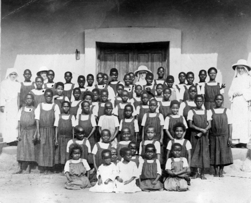 On December 3, 1902, Sister Kevin Kearney and five other sisters, with Sr. Mary Paul as their leader, left London for Nsambya, Uganda. Their Institute’s’ leaders chose them at the request of Bishop Hanlon of the Mill Hill Fathers. The sisters arrived on January 15,1903 and established a dispensary and school in Buganda, then under British colonial rule. Among the sisters were three Irish nationals, one American, one English, and one Scottish.